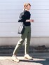 黒×カーキ 足元をベージュのバレエシューズにするだけでも、春らしくなりました◎