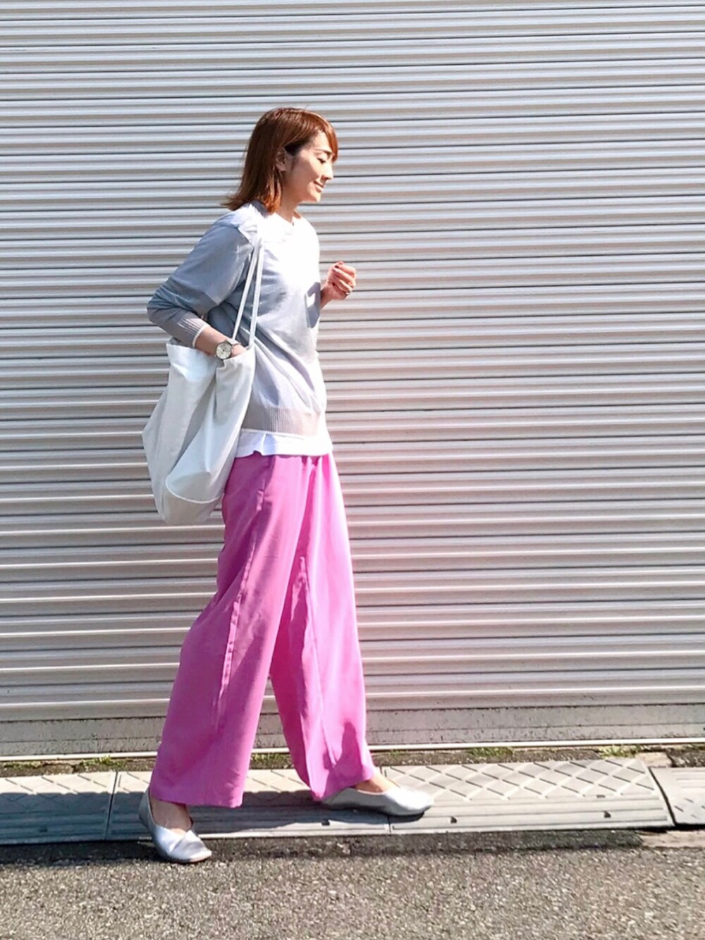 ピンク×グレー 大流行中のカラーパンツには、相性良しのトップスが必ずある!