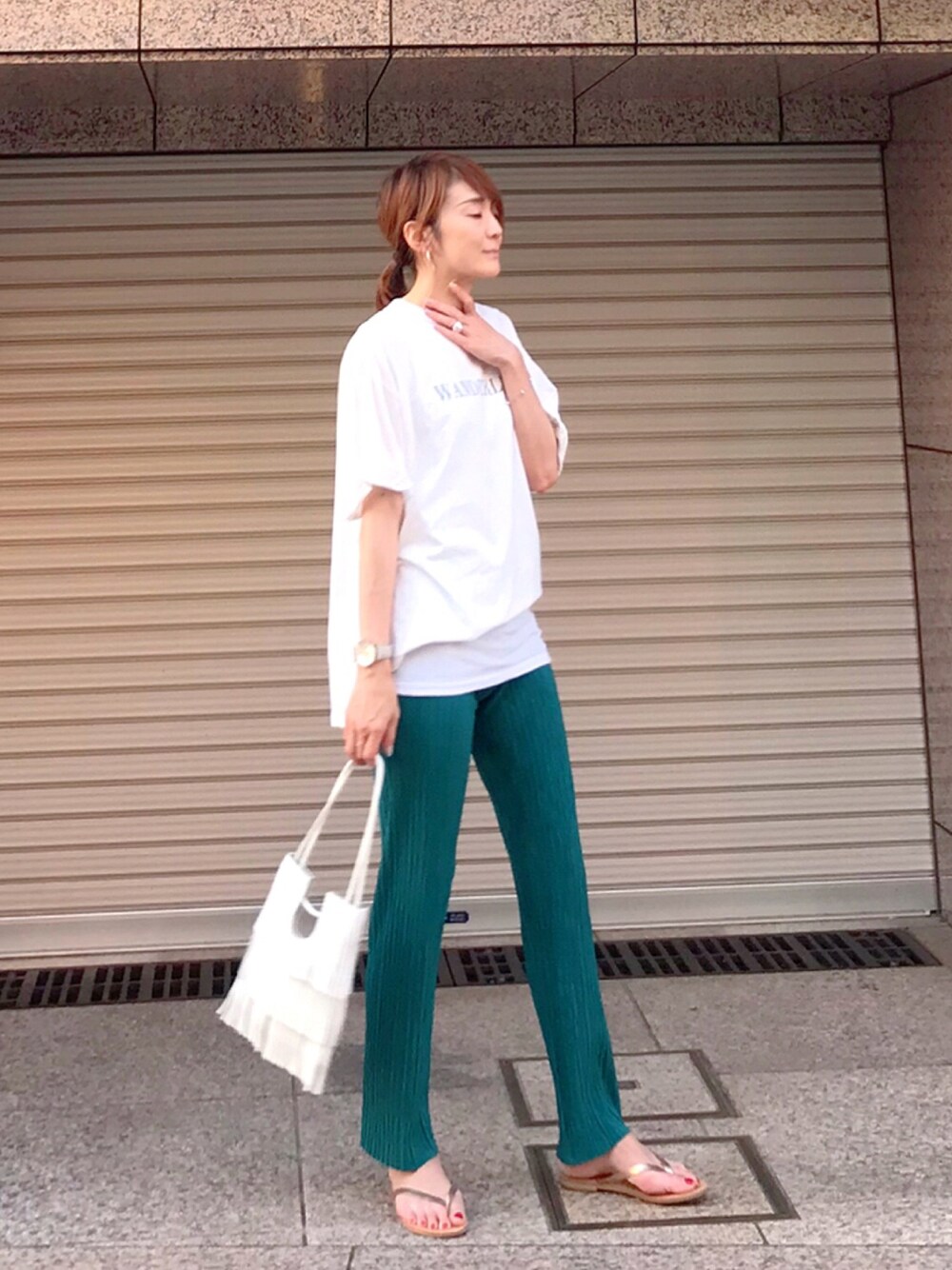 脚が細く見えるプリーツパンツ発見! 裾から15センチ以内なら、自分の長さに自由にカット出来る優れもの◎