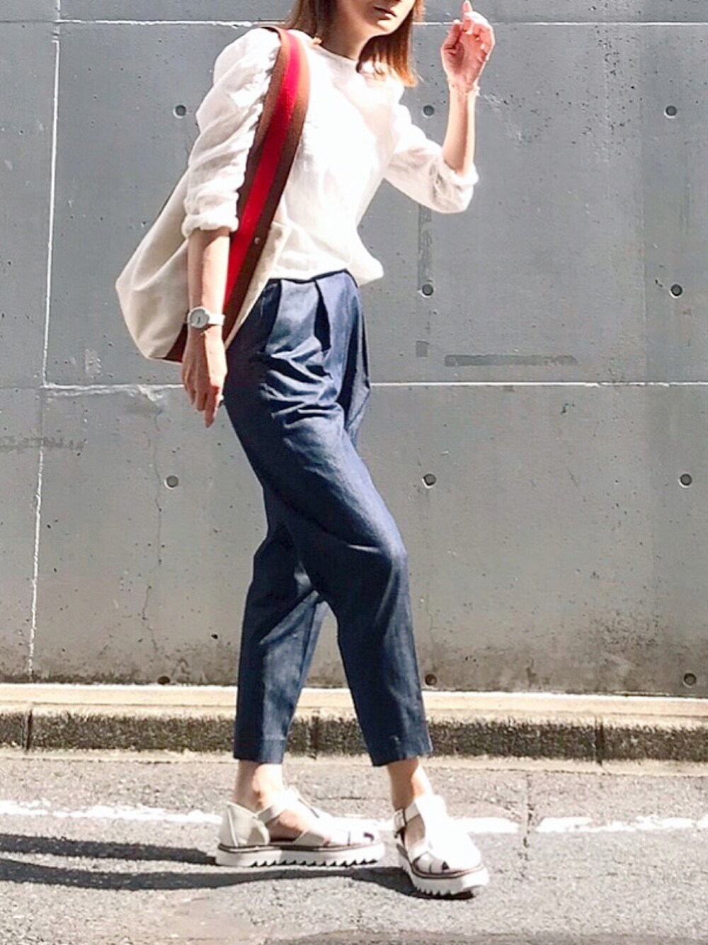 白✖️ネイビー この組み合わせならいくつあっても困らない◎ 白グルカサンダルで鮮度アップ⤴️
