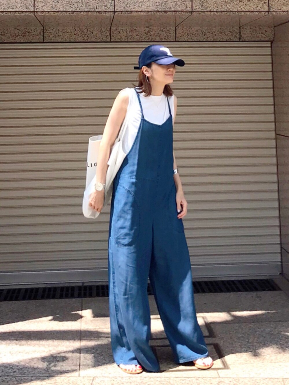 大好き白×ブルー デニムサロペットは軽い素材だから、夏でも涼しいです!