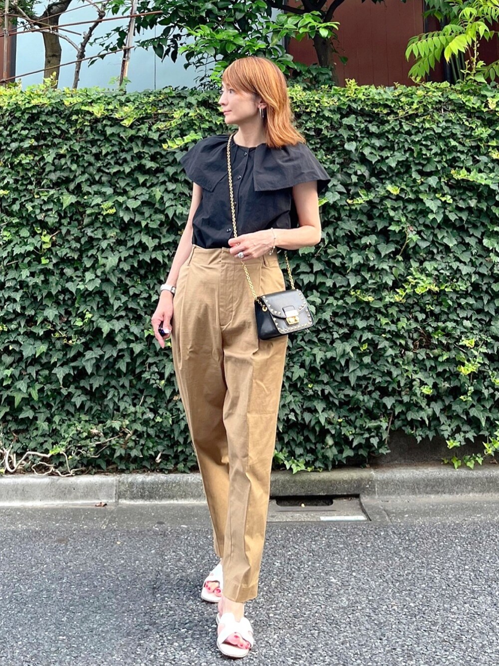 甘めブラウスはチノパンと相性抜群◎