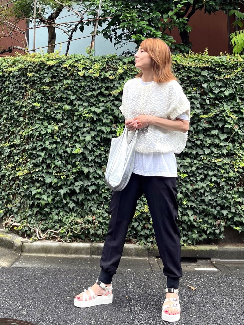 安定のモノトーンコーデ 甘めなトップスにTシャツレイヤードがお気に入り◎