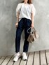 シンプルだけど好きなコーデ 夏ならサンダルだけど、スニーカーにシフトすれば通年コーデに◎