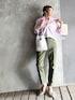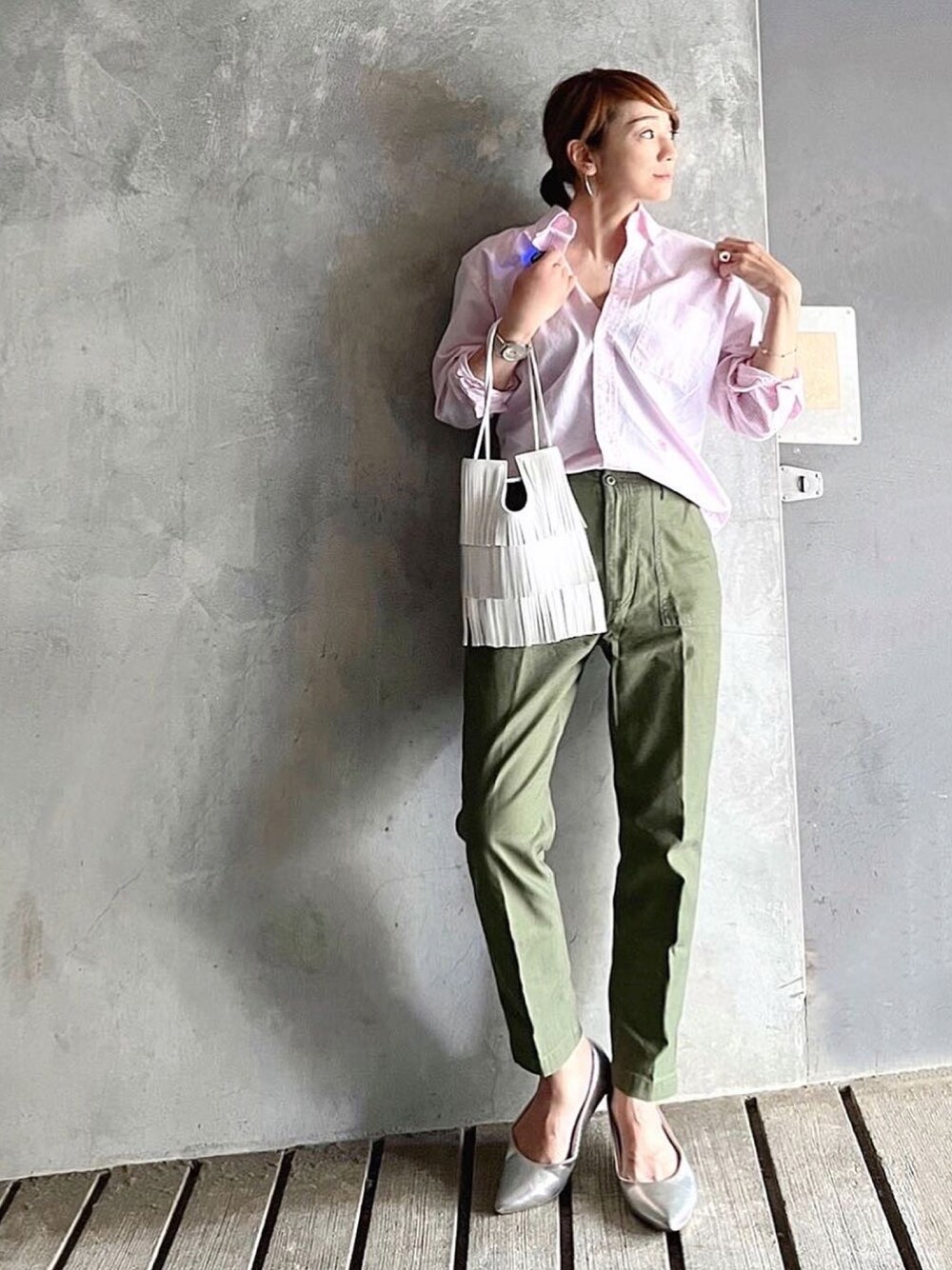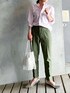 ピンク×カーキ ピンクでもストライプのオックスフォードシャツなら、甘さなく着れます◎ LWmの刺繍が高級感ありです◎