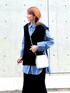 ブルーストライプシャツ ビッグカフスがポイントになって、シャツでも様になります◎今季流行りのベストとも相性抜群!