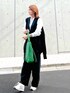 モノトーンカジュアル 腕を外してニットベストみたいに着るカーディガン◎今の時期限定のコーデです!