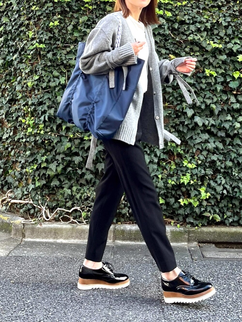 LUMIEのトートバッグ「<NOMADIS>SAC ロゴ リバーシブル トートバッグ L」を使ったコーディネート