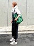 LUMIEのトートバッグ「<NOMADIS>SAC ロゴ リバーシブル トートバッグ L」を使ったコーディネート