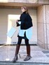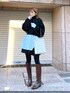 クロップ丈ニットにシャツをレイヤード 好きな感じのモノトーンコーデになりした◎