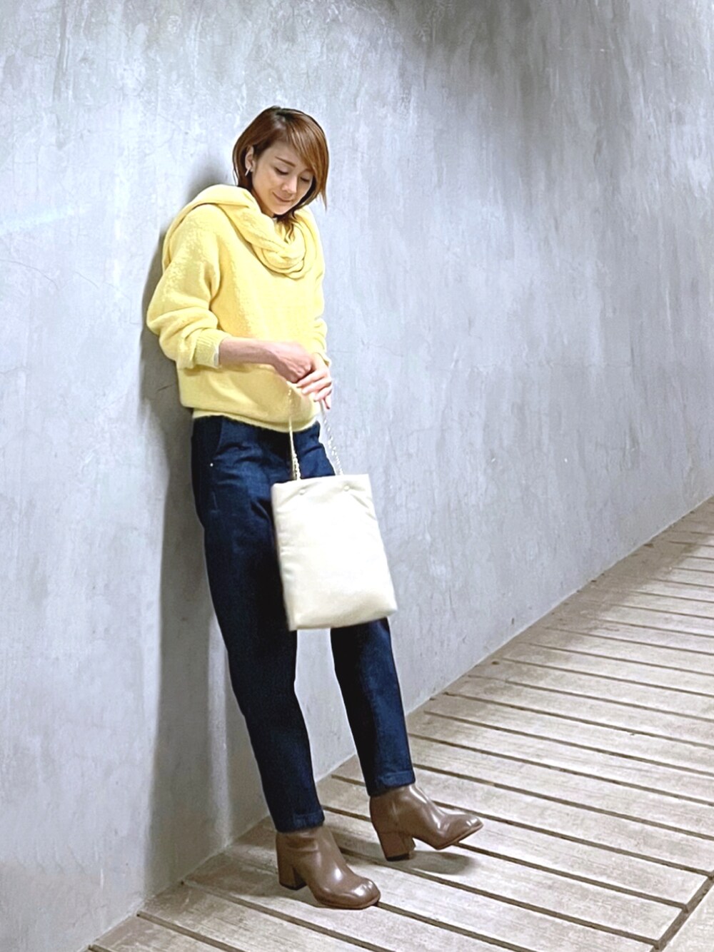 黄色ニットで春先取り!