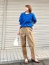 チノパン✖️ブルー シンプルコーデの時は、足袋パンプスがポイントになります!