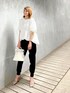 イージーケアペプラムジャガードブラウス ジャガード柄が華やかで、シンプルモノトーンコーデが決まります◎ フロントインでもアウトでも良くて、色々なボトムに合わせ易いです!