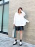 秋には大好きシャツコーデ🍁 後ろスリットが可愛いチュニックシャツ 今季はゴツめローファー合わせが旬