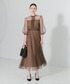 LUMIEのドレス「【LEJA】デコルテシアープチハイネックパフスリーブチュールドレス美脚効果ドレス結婚式 パーティードレス 20代 30代」を使ったコーディネート