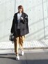 ダークカラーのアウターが多くなってきたら、パネルボーダーの出番です。 顔まわりが明るくなるから重宝します! ニットはハイゲージで上品で綺麗見えするから、オンオフ使えますよ