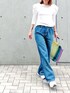 白スニーカーに合うデニムを探していて、ぴったりのデニムを見つけました! ・ ・ ポイントは、前後で色味が違うデザイン。 タックのデザインお陰で、お腹周りが目立たないのも嬉しいです。 ・ ・ 程よいワイド幅だから広がりすぎず、落ち感があるシルエットで、スニーカーに裾が乗った時のバランスもバッチリです。 ・ ・ 後ろポケットも凝ってて、ヒップが綺麗に見える気がします! ・ ・ 柔らかめのデニムだから無理せずリラックスして履けまよ。