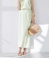 ミントグリーンのセットアップを、キャップとビルケンでカジュアルダウン