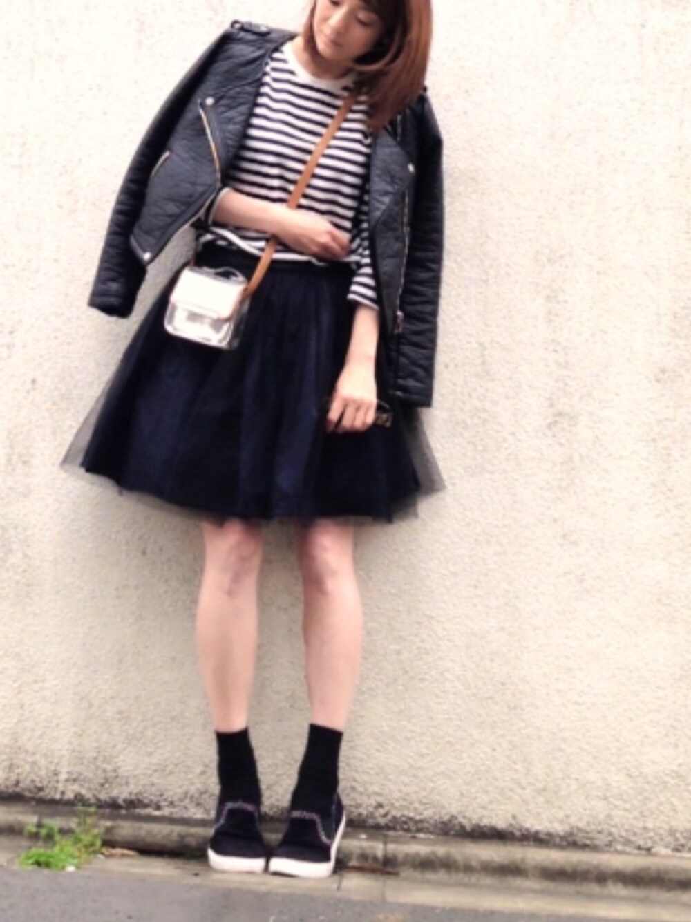 結局 こんなコーデが好き❤️❤️❤️ 春なので、生脚 & シルバーポシェット で 明るさUP👯💫 最近通販でGETした(店舗ではSサイズ完売してましたー😂😂😂)UNIQLO メンズ ボーダー は、ネック周りがホワイトってところがお気に入り🙆🙆🙆 一気に顔が華やぎます😆😆😆