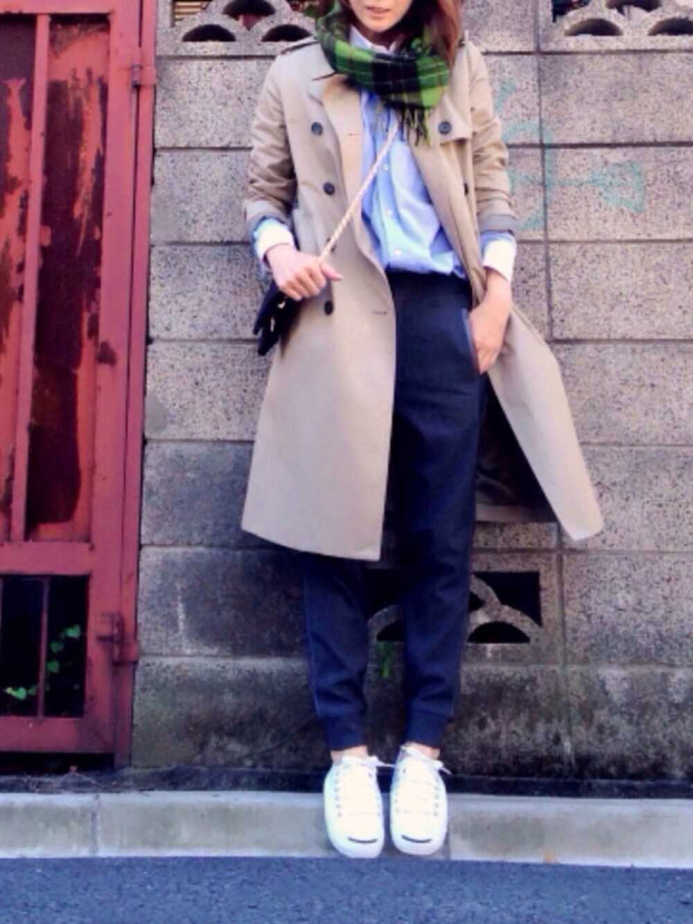 去年も参加したTAOさんのトレンチコーデフェス😇‼️ 今年は去年と同じリブパンツをスニーカーに合わせてみました👯💫 冬には着込む楽しみがあるトレンチコートも、秋はジャケット感覚で、インナーを見せる着こなしを楽しみたい🍁🍂🌰 全体的にはトラッドにまとめるのが私流🙆🙆🙆