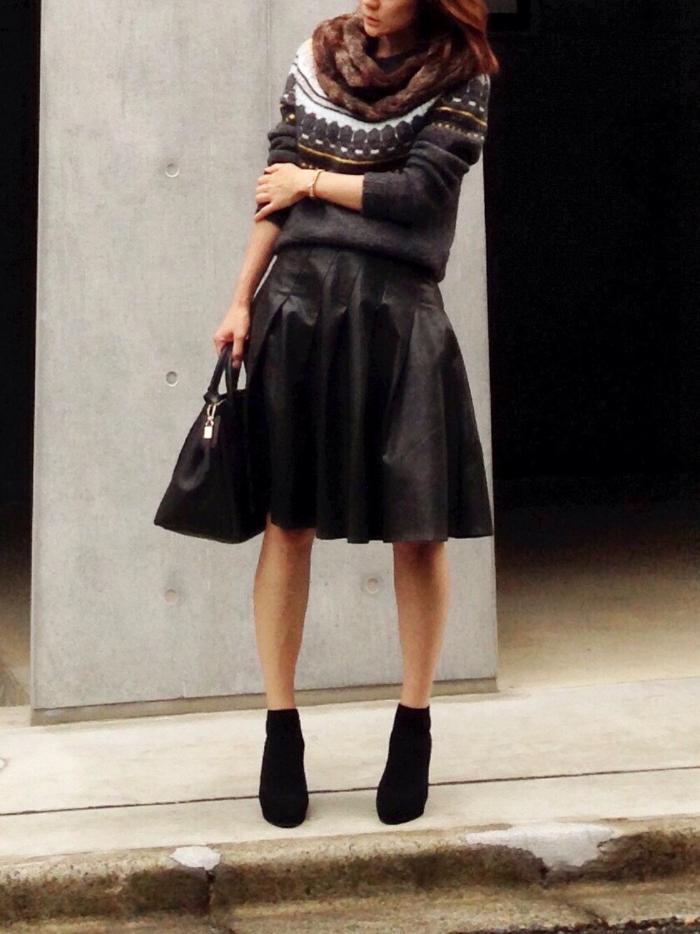今年は、ノルディック柄セーターがとにかく着たくなりました🙋‼️ あったかい雰囲気のセーターには、敢えてハードな黒レザーを合わせて😎 shinoちゃん!ようやくノルディック柄デビューしましたよー\(^o^)/