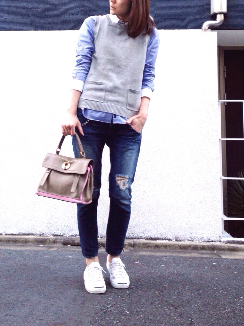 無類のシャツ好きの私は、春に向けてクレリックシャツを買い足しました💪🏻❗️ 襟とカフスが白いだけで、めちゃ上品になりますよね😇←自分で言う だからデニムはクラッシュ多めくらいがちょうど良い🙆🏻🙆🏻🙆🏻