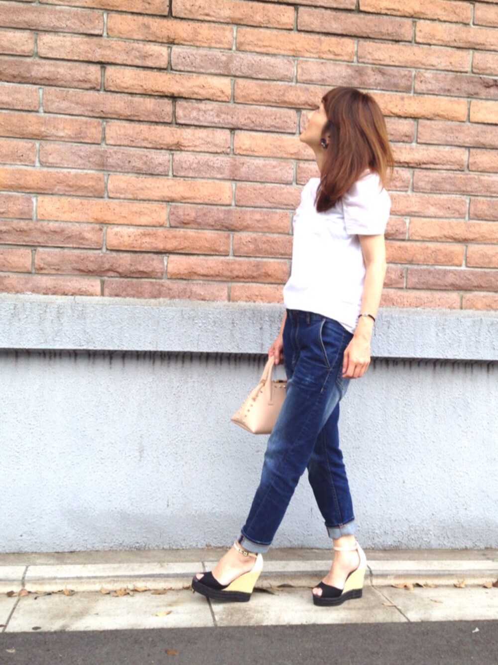 今日はお出掛けコーデ💗 パフスリーブ と 高めヒールサンダル でちょっと可愛い吉田栄作style😚😚😚👍🏻 実は、フリンジが素敵なイヤリングもしてます❗️ Instagram→lumie0206