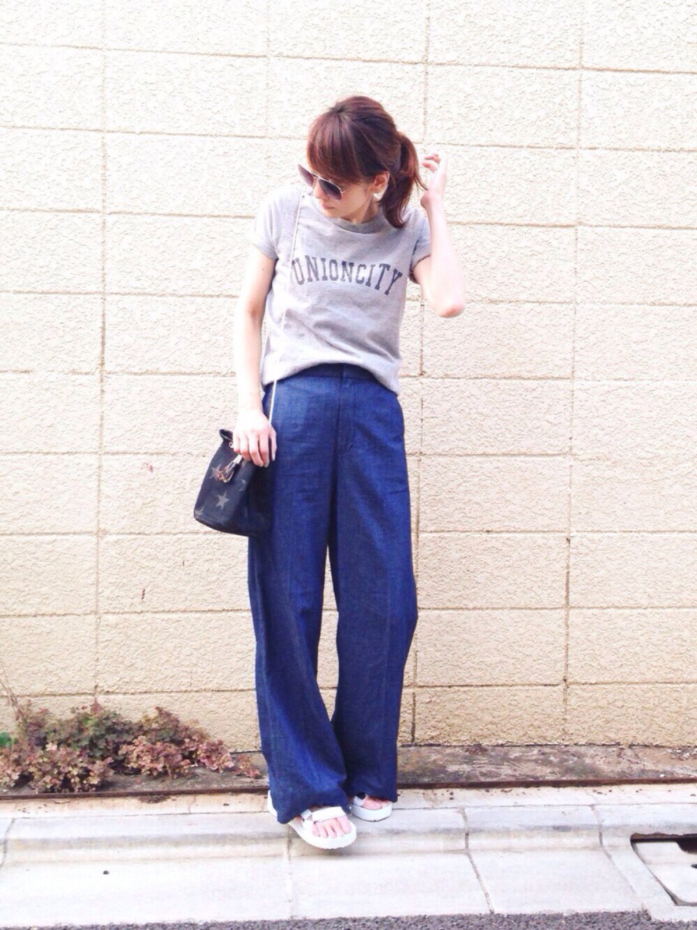 いつになくラフ💪🏻 大人だって、ロゴTにブルーデニムが着たい時がある😎 デニムのユルさとスポサンが今年の味わい❤️❤️❤️ Tシャツの袖は二つ折りしてます🙋🏻 Instagram➡︎lumie0206