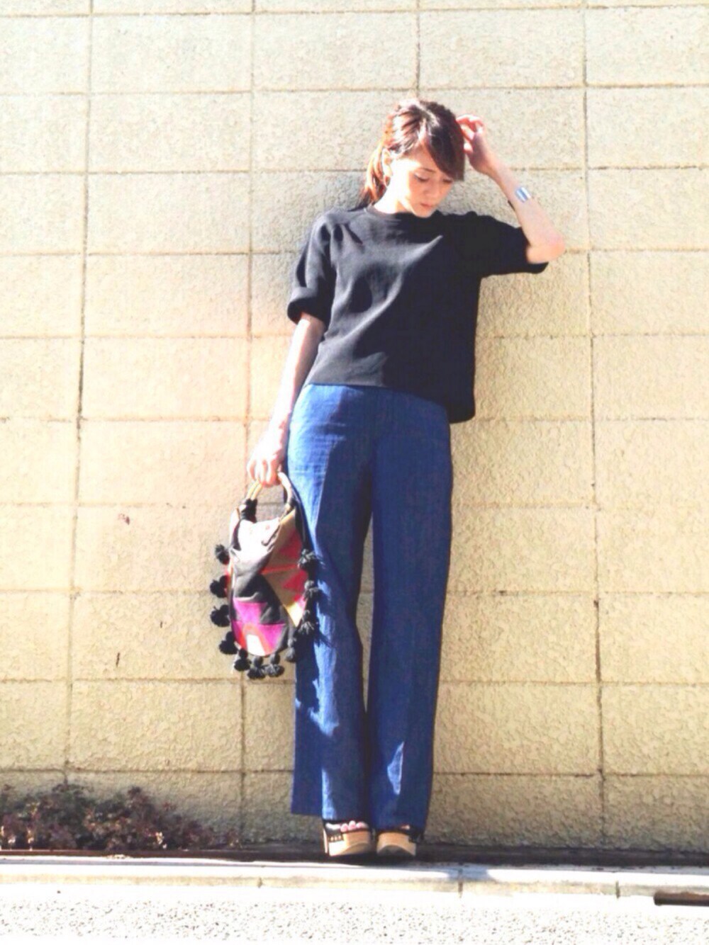 黒 × デニムワイド こちらのトップス、アイテム登録はネイビーにしましたが本当は黒です。黒はzozoでは取り扱いないみたいです😂でも、ネイビーも欲しい💪🏻 いつものTシャツコーデをニットに置き換えるだけで、ちょっと上品になります🙋🏻❗️