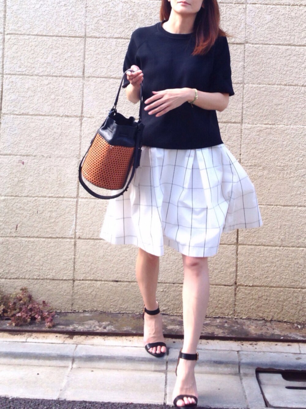 たまにはレディに❤️❤️❤️チェック柄投入でちょい秋風味。 クールな黒ストラップサンダルは、フレアスカートとも相性抜群🙆🏻🙆🏻🙆🏻スカートの甘さを程よく引き算してくれます。 トップスがゆったりシルエットなので、フレアスカートとの繋がりもイヤらしくなくさっぱり👍🏻