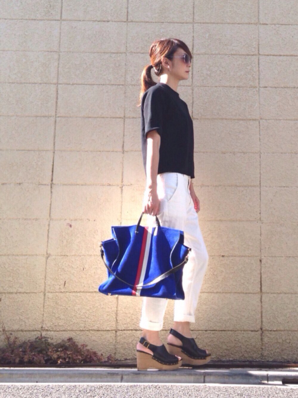 急いでる時のお助けモノトーン😎 暑いと洋服はレイヤード出来ないから、カバンを変えて。同じコーデがまた別の雰囲気になります❤️❤️❤️