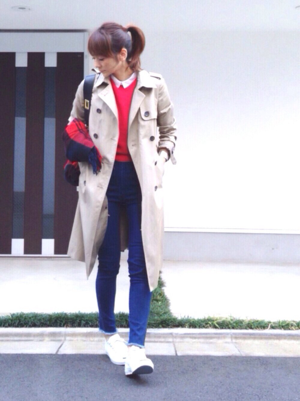 赤 × トレンチコート❤️