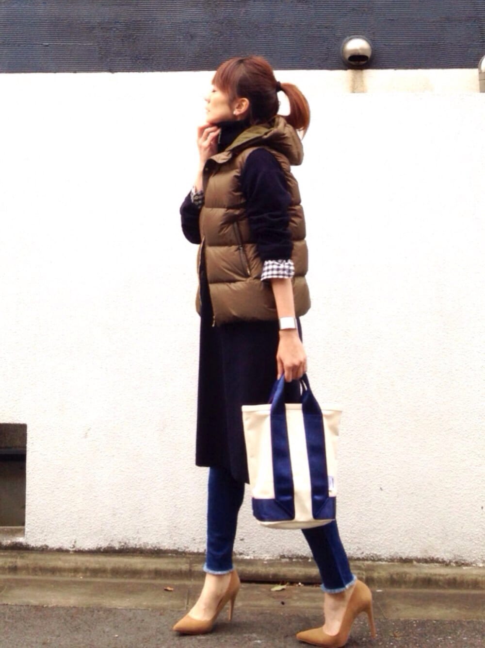 LUMIEのダウンベスト「【VERY 11月号掲載】 西川ダウン/ファー付フードベスト」を使ったコーディネート