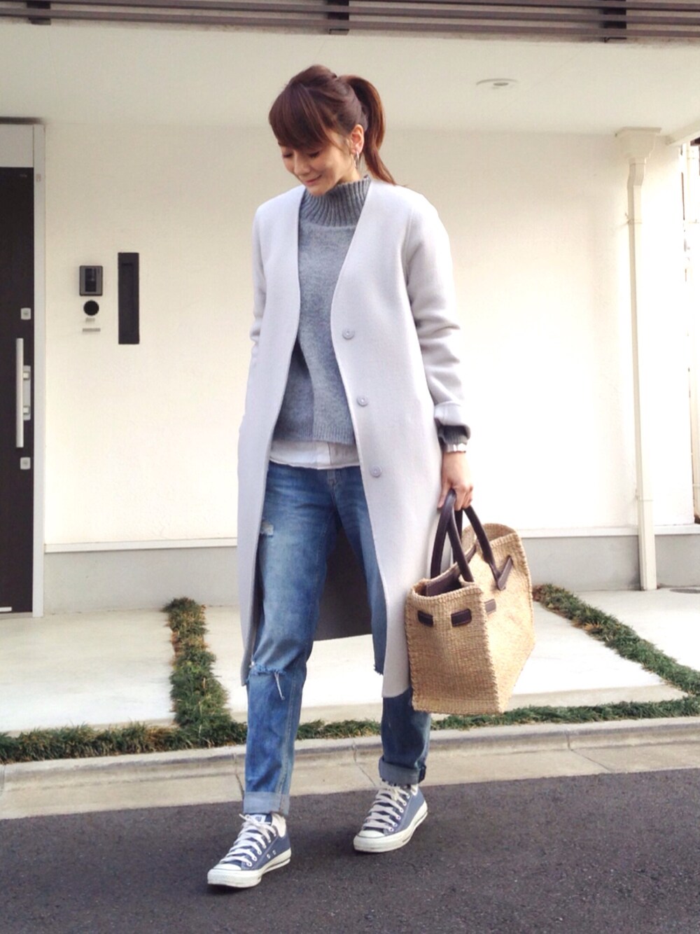 ずっとやりたかった、白靴下×スニーカー😇 黒オールドスクール × 白靴下が、本当は凄くやりたかったんだけど、とりあえず手持ちの青コンバースと合わせてみたら意外にハマって大満足💪🏻 足元を外してる分、アウターは白系でお上品に🙈💕💕💕 ニットにはシャツレイヤードが私流。 週末はこんなスタイルでルミネtheよしもとデビューしてきました(๑˃̵ᴗ˂̵)笑い過ぎて法令線クッキリw