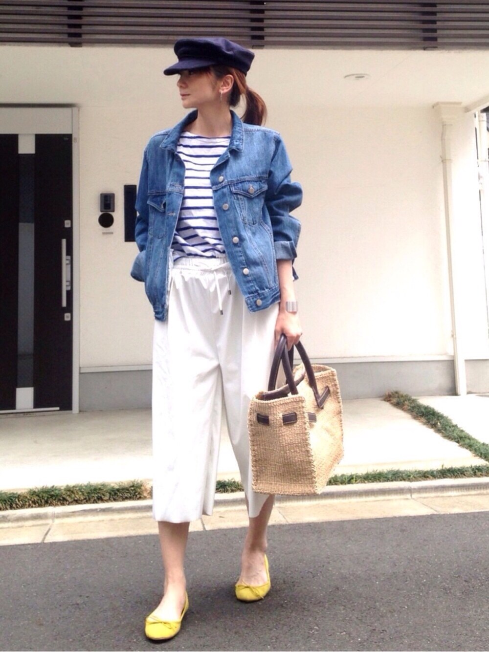 マリンコーデの足元に黄色を差して🙌🏻 なんてことない定番コーデですが、落ち着くやつです😃💕💕