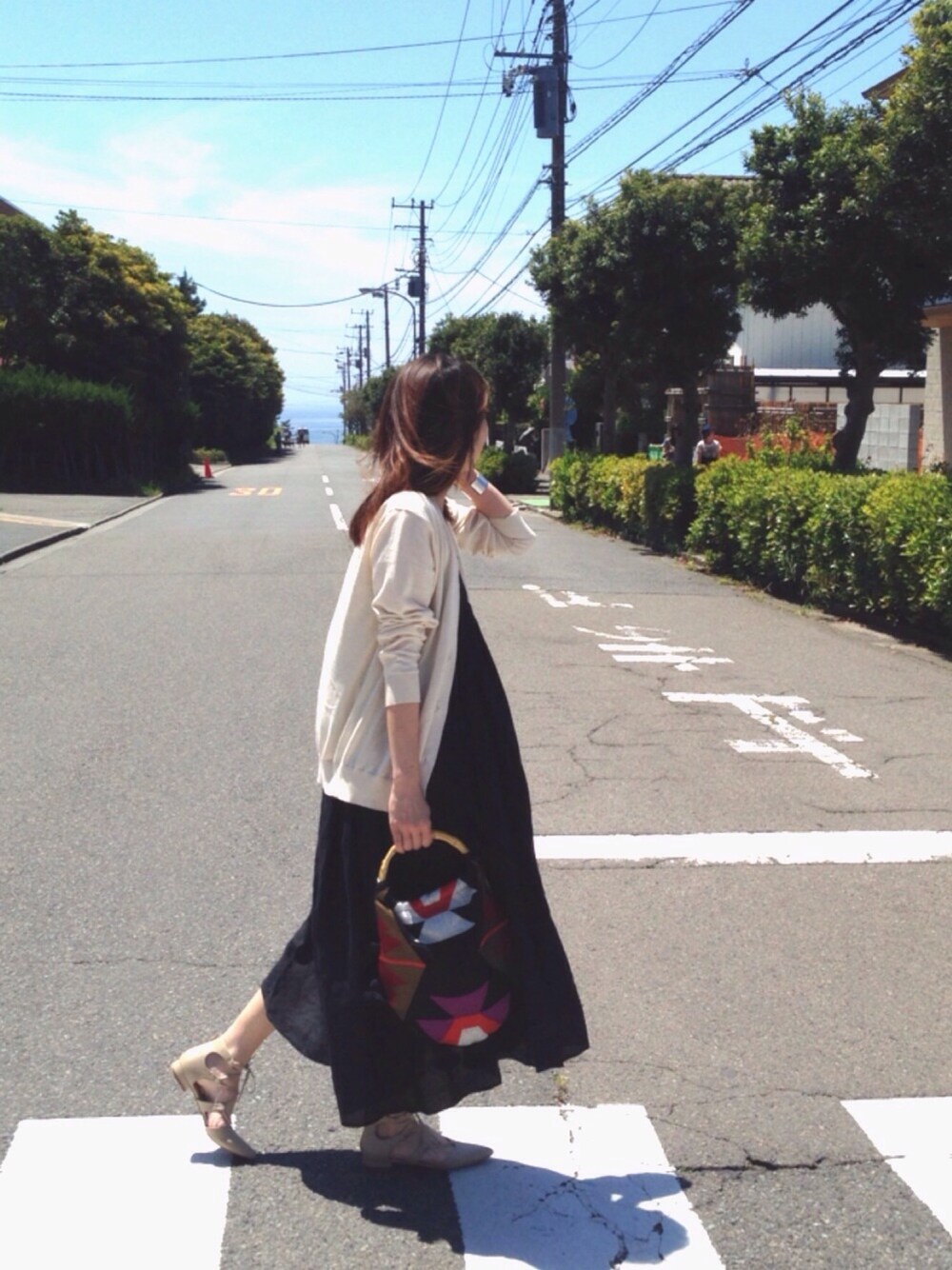 遠くに海が見えてます🌊 自然と胸からAラインに広がるワンピース。麻素材でシャリ感があって、ふんわり具合も肌触りも最高です🙆🏻春から夏まで大活躍だと思います🙌🏻 GWも終盤ですね。最後まで楽しみましょう🙈💕💕