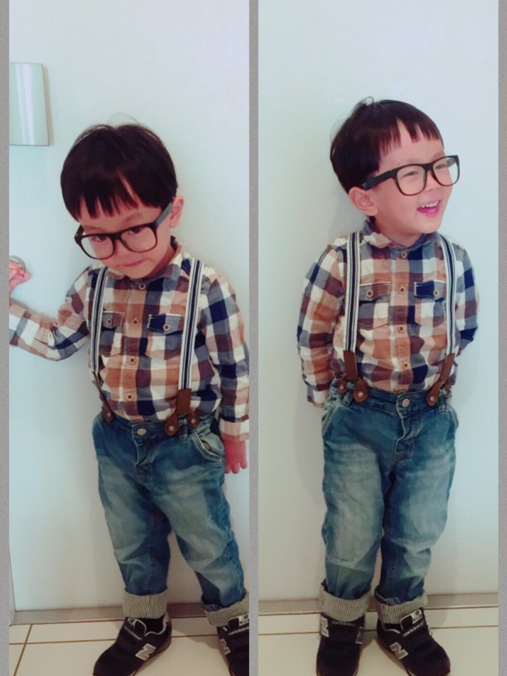 だてメガネ & シャツinの秋コーデ。 今日は地元のお祭りに! 鬼が居て半泣き状態!笑 怖すぎて後ろが向けない息子。 息子なりの精一杯の笑顔です。笑