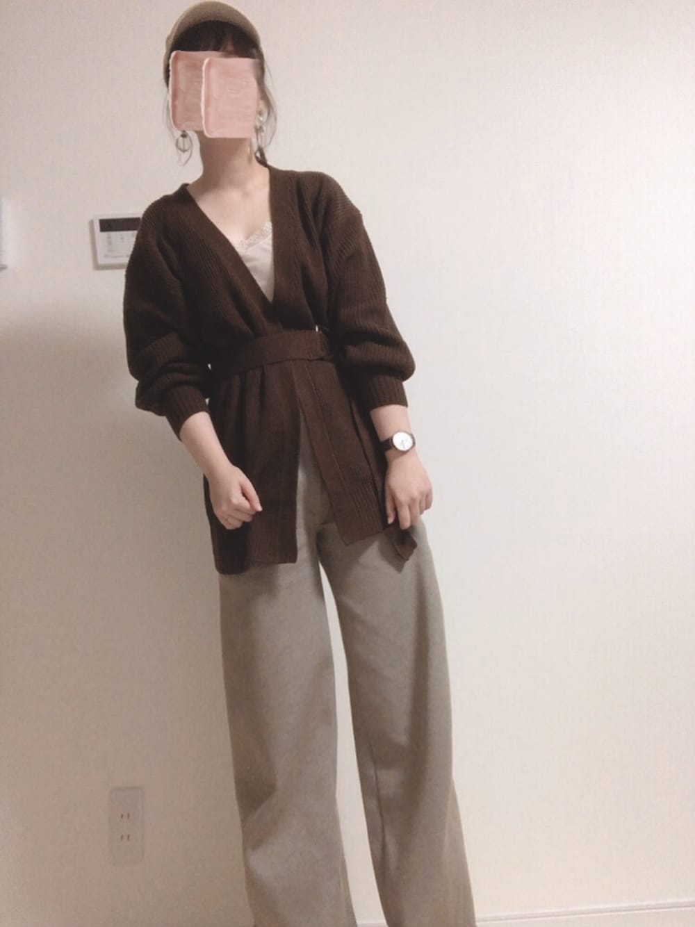 茶族さん秋仕様🍂🍁 ほんとUNIQLOの ジャージーカーブパンツ 楽チンすぎて最高。ばんざい🙌 ニットはベルト付きで細見え 片落ちなのでゆるく着れます◎