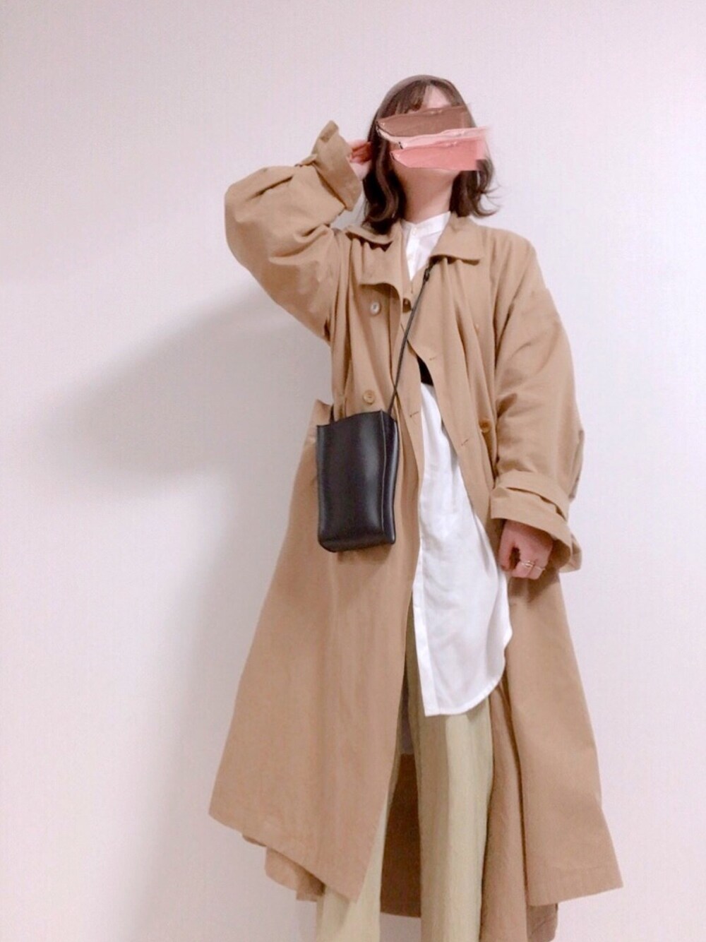 kaorunのトレンチコート「”パフボリュームトレンチコート” 3wayのボリュームスリーブがポイント、オンオフ着られる春秋2シーズンコート」を使ったコーディネート