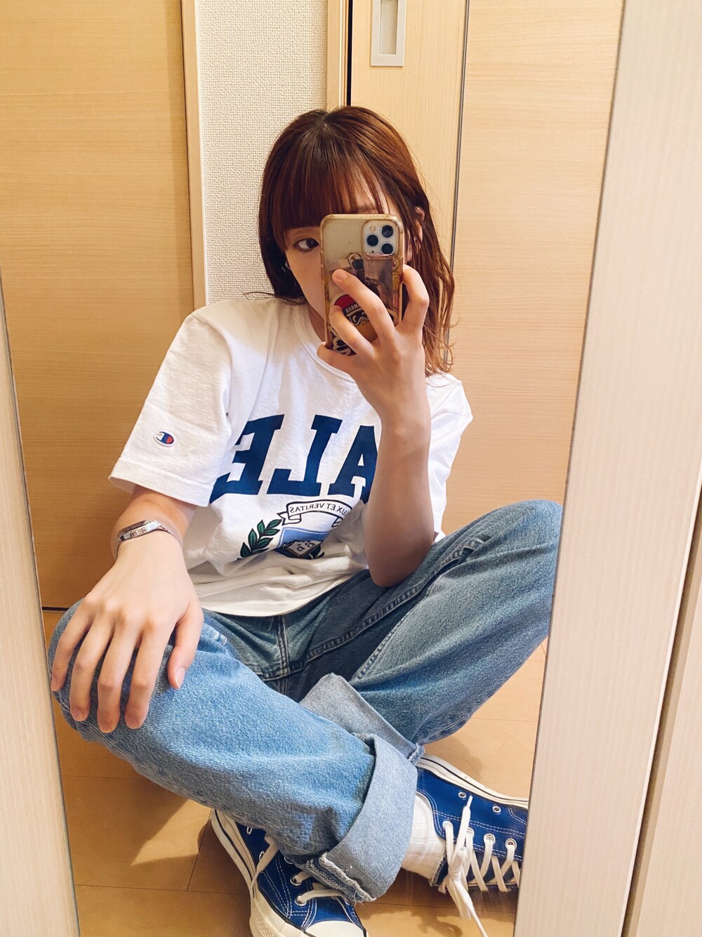 yukarunのTシャツ/カットソー「Champion: MADE IN USA T1011 YALE Tシャツ 22SS」を使ったコーディネート