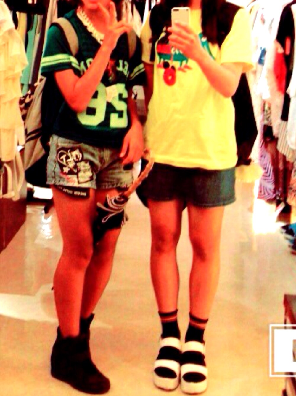 約一年前のコーデ。また、ミニスカはけるように、足細くしようww 左はお友達です! 学校あるので投稿ペースおそくなると思います( ´•д•` )💦