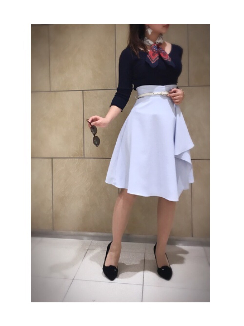 runaのスカート「ハイウエストリボン巻ドレープスカート◆」を使ったコーディネート