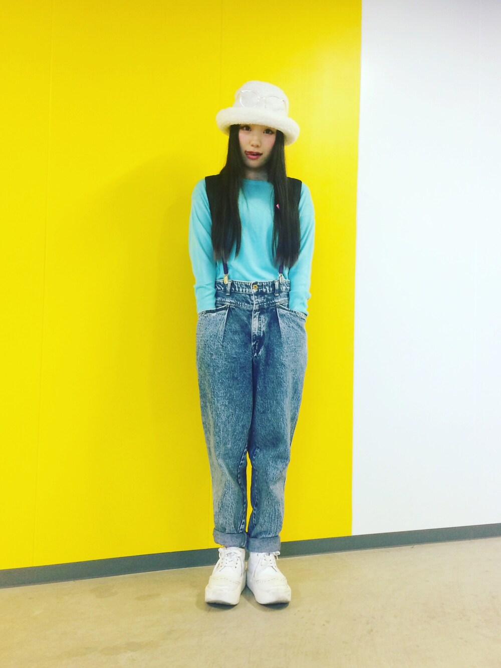 トップスにつけたバッジと、ソックスがピンクでポイントだったのに見事に両方隠れちゃった、、🙆(笑)