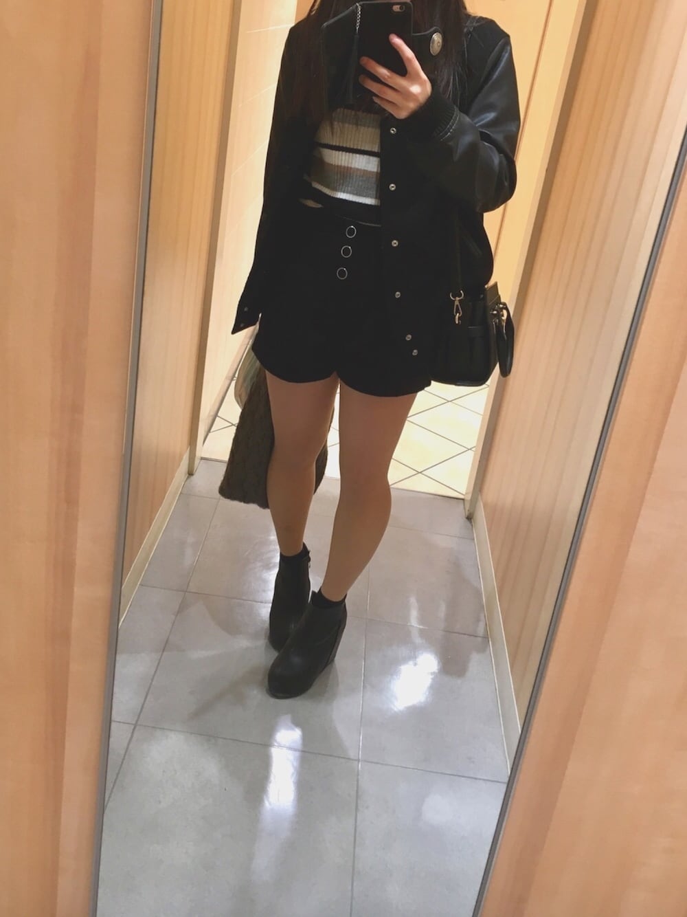 寒いけどショートパンツを履いてみました。 黒コーデには赤リップがとてもはえます