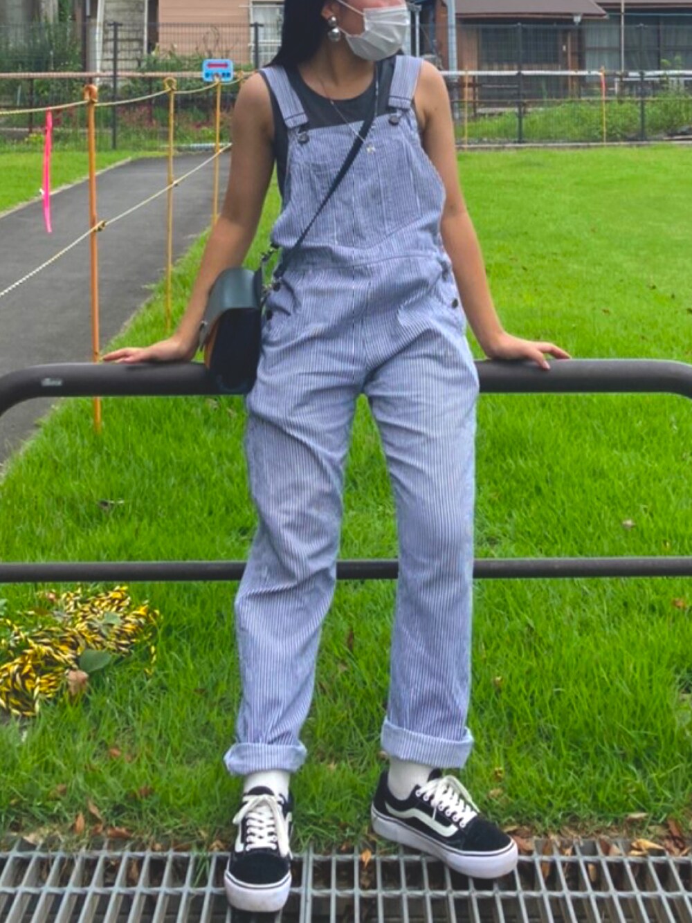 この超可愛いオーバーオールは👵🏼の手作り!ほんとにお気に入り! オーバーオールってどの季節も着れるから凄く便利だよね!