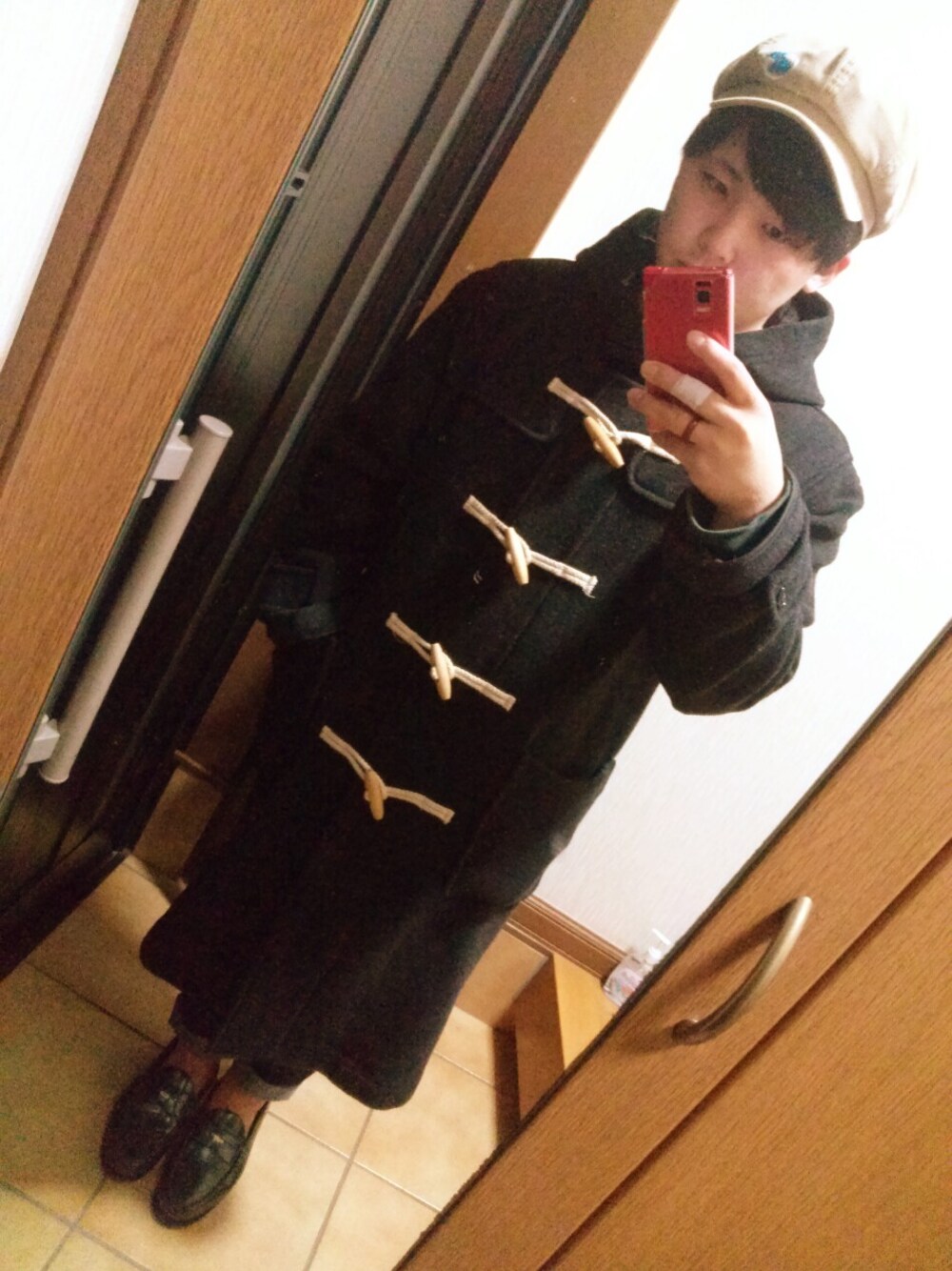 一時期の寒さとは違いますね。 これからちょっと出掛けてきます。 メインのダッフルでダボッとした感じを出し 足元ですっきりに 緑のローファーがアクセントに