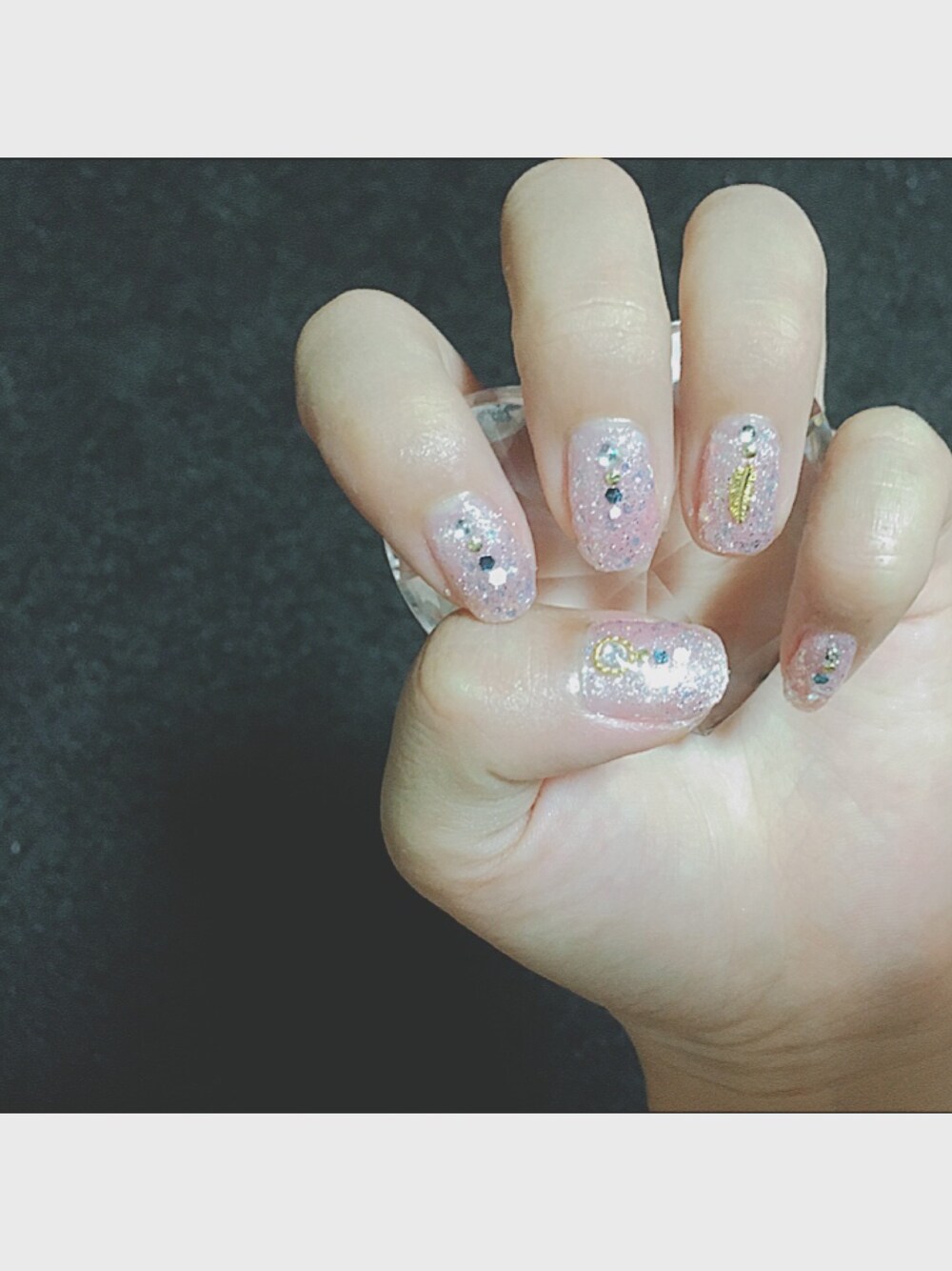 なかなか寝付けないのでネイルチェンジ ベビーピンクをベースにキラキララメ・:*+.\(( °ω° ))/.:+ 最近やっと新しい職場にも慣れて来たのでぼちぼち店頭コーデもあげて行こうかなあと
