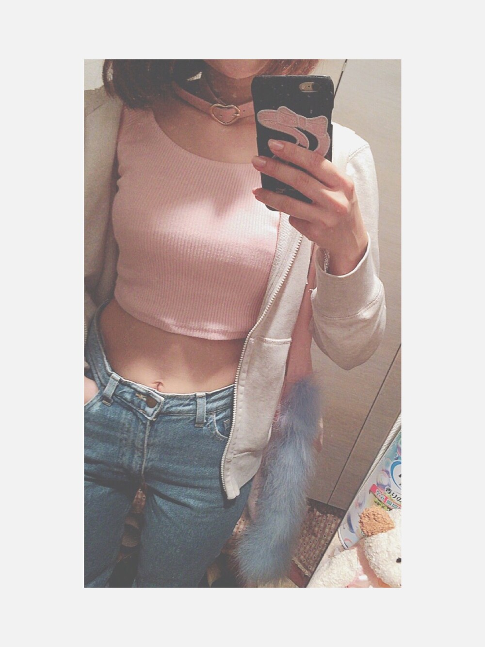 one spoのチョーカーついてるトップス ロリで可愛い💗チョーカーハートだよ💗 なんか可愛いお洋服ほしいな☺️
