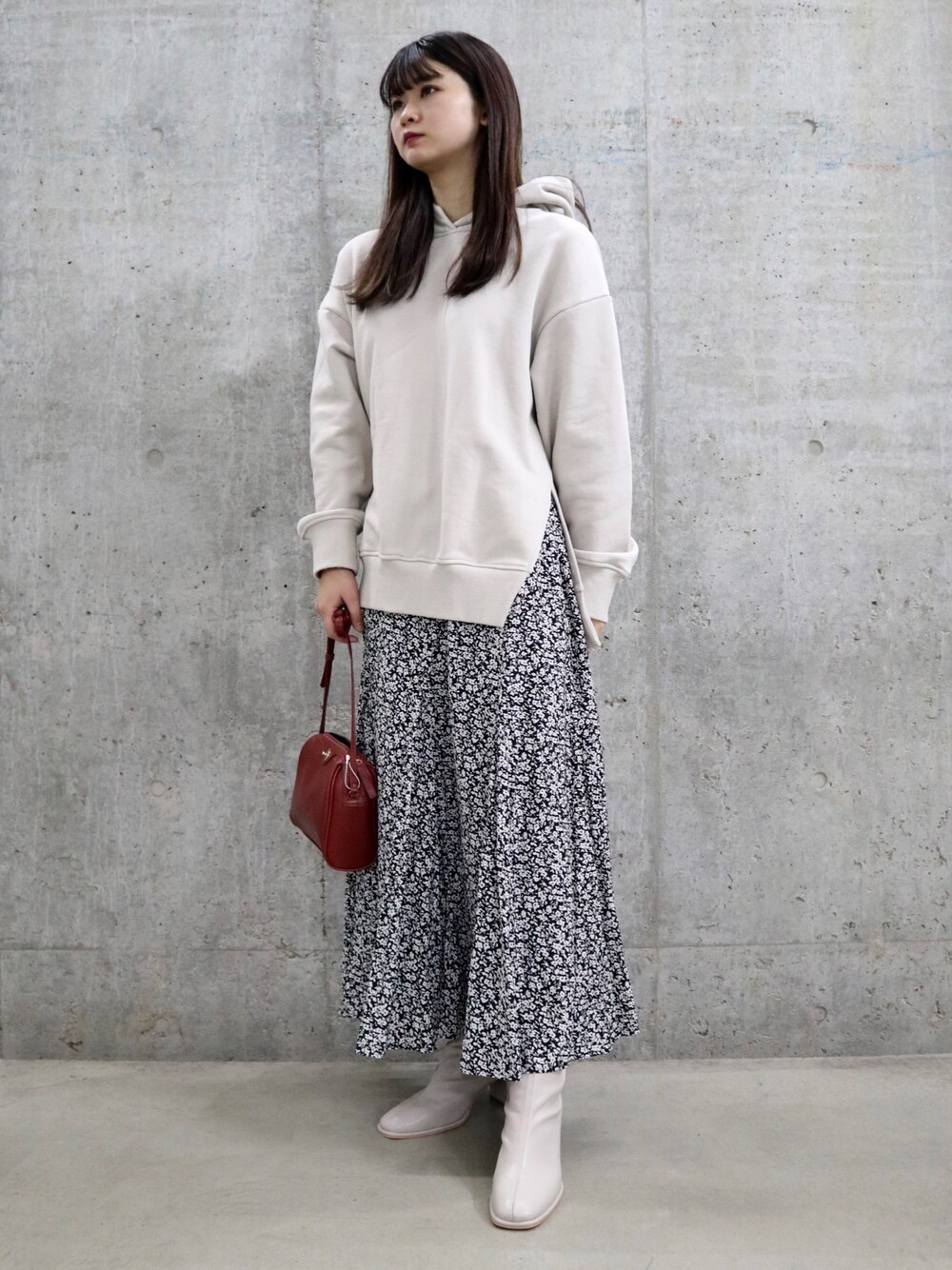 フラワープリントにパーカーを合わせました!シンプルだけどフラワープリントで可愛さをカバーしてます^_^