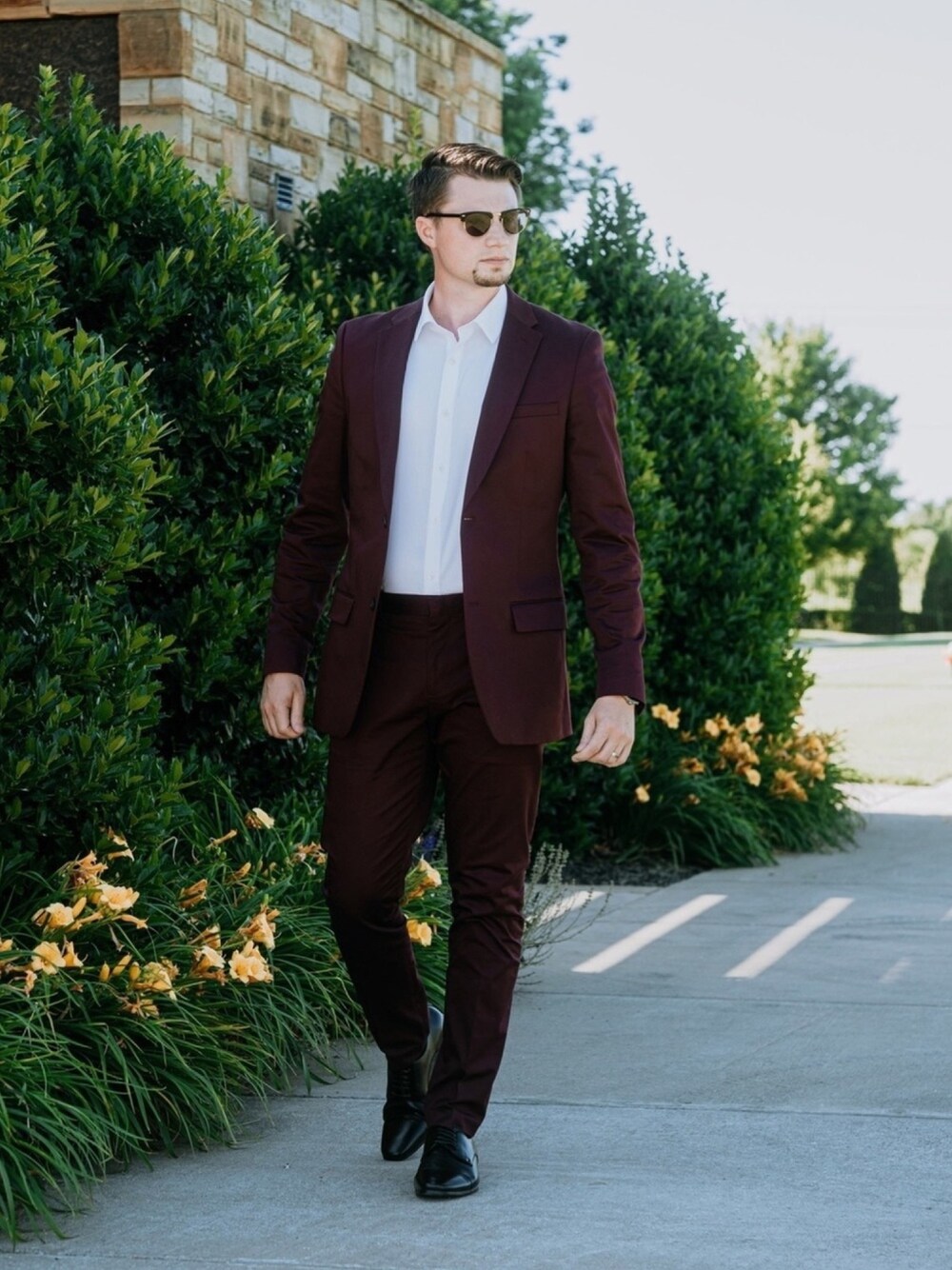 Maroon suit. It’s something I’ve always wanted and now I’ve got a chance to have one. Check out my Instagram account @runnineverlong for more inspiration. Photographer @grubbw